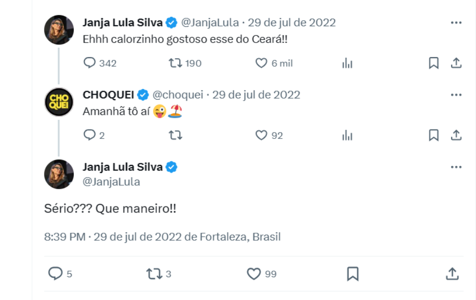 Além da primeira-dama, o próprio presidente Luiz Inácio Lula da Silva também teve interações públicas com o perfil.
